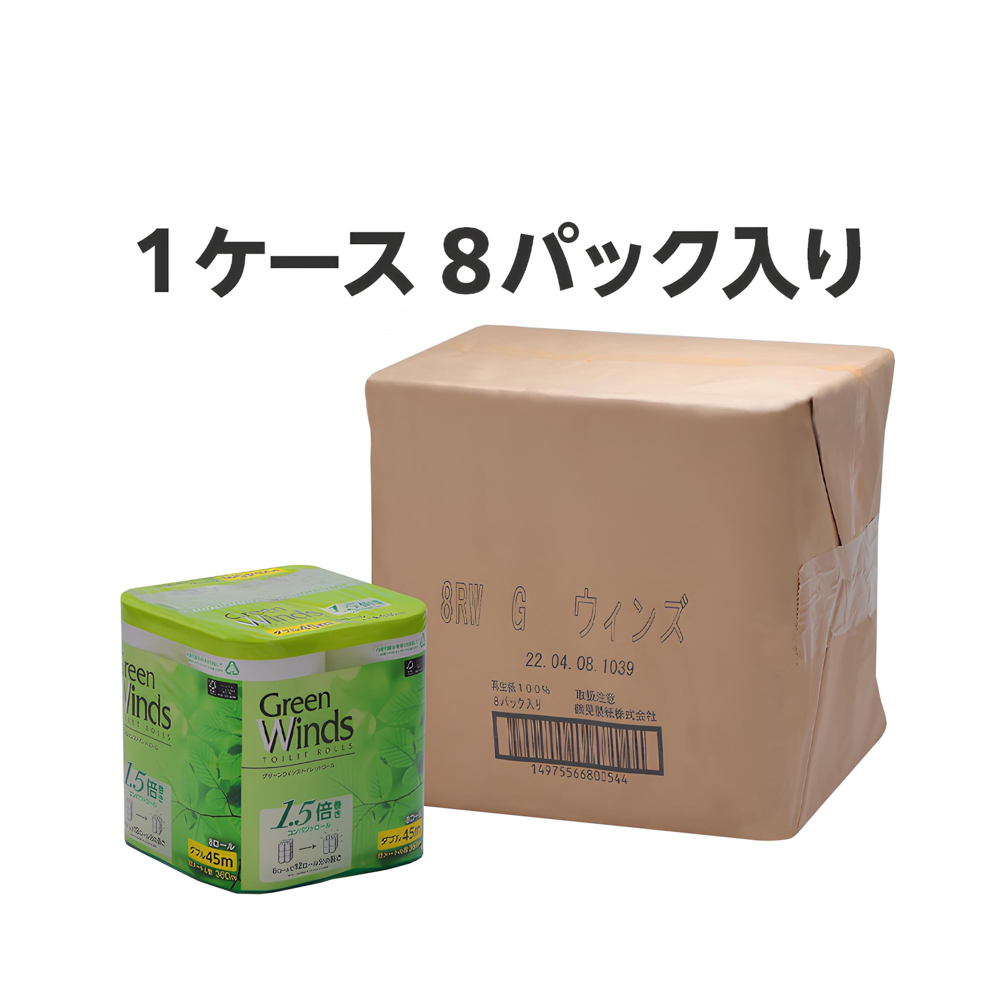 ※1ケースに「グリーンウインズ1.5倍巻き8ロールダブル」が、8パック入った状態です。